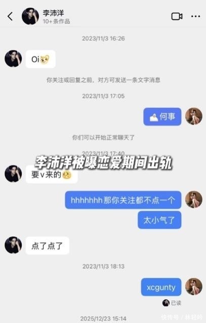 另有知情人士透露,李沛洋在与六金保持联系的同时,还与另一位女性保持着暧昧互动。综合现有证据判断,他极有可能在同一时间段内维系着三段并行的情感关系。